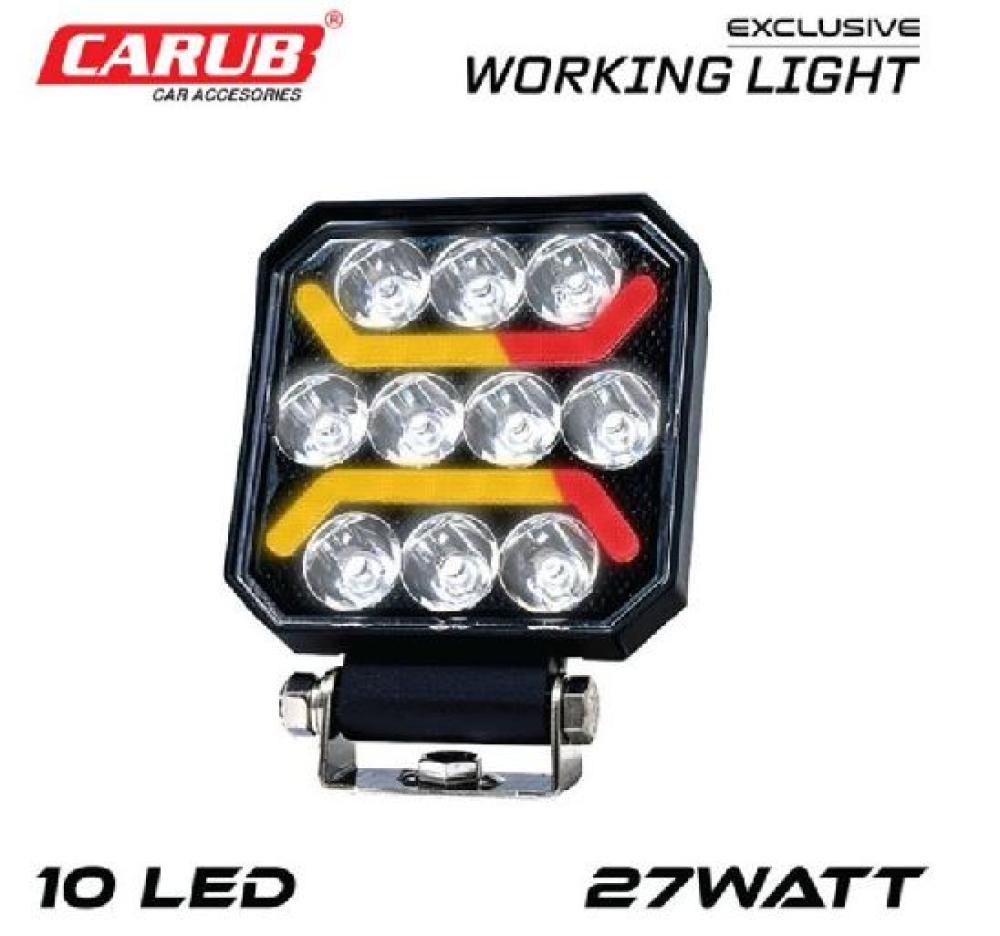 10 Led Çalışma Lambası 27W 12-24V Beyaz, Kırmızı ve Sarı Fonksiyonlu
