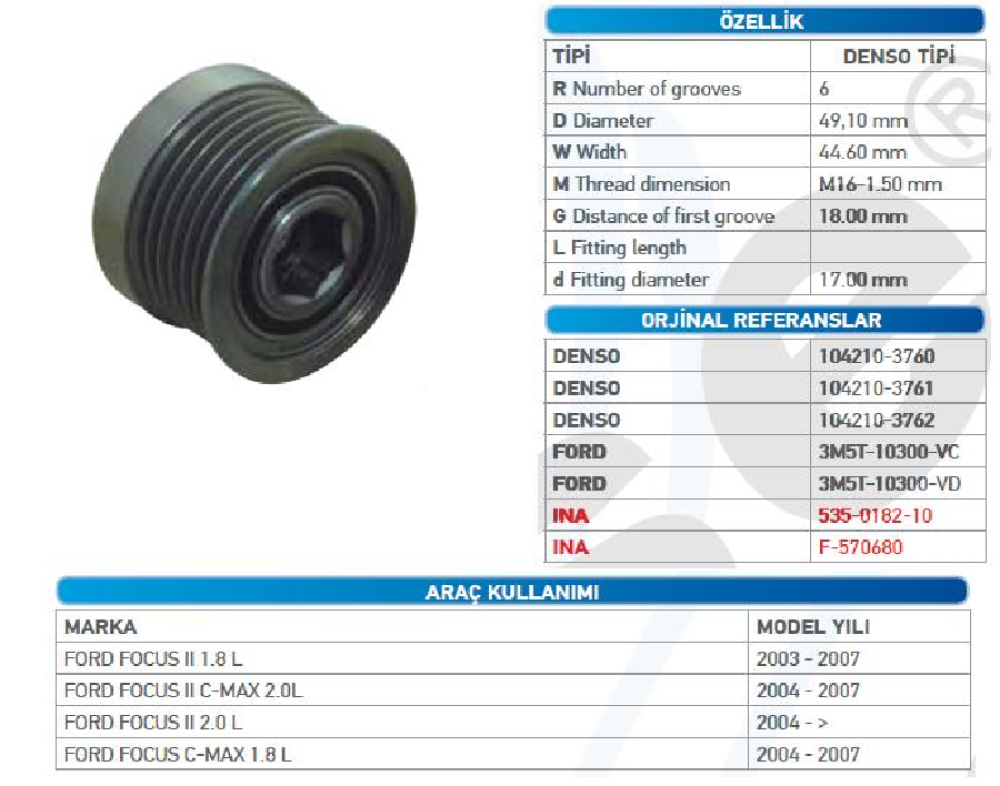 ALTER.KASNAK BİLYALI > FORD FOCUS II 1,8- FOCUS II C-MAX 2,0L- C-MAX 2 WUT.1102.0028 KSN82300 WUT.1102.0028