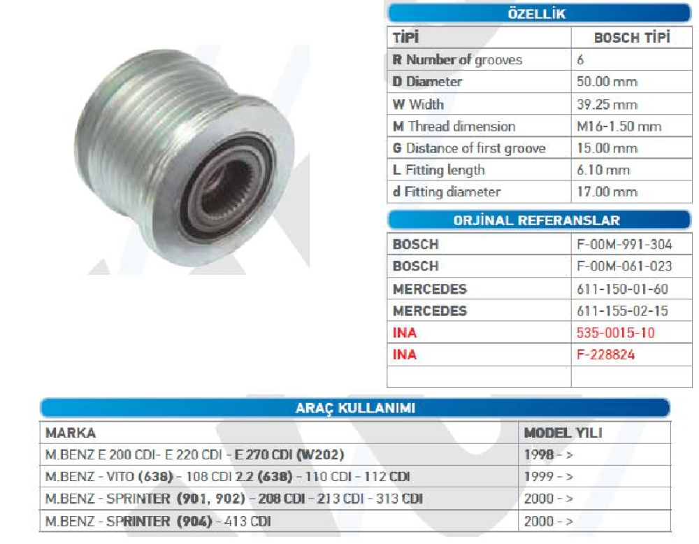 ALTER.KASNAK BİLYALI > MERCEDES BENZ E 200CDİ - E 220CDİ - E270CDİ (W202) KSN91263 WUT.1102.0048