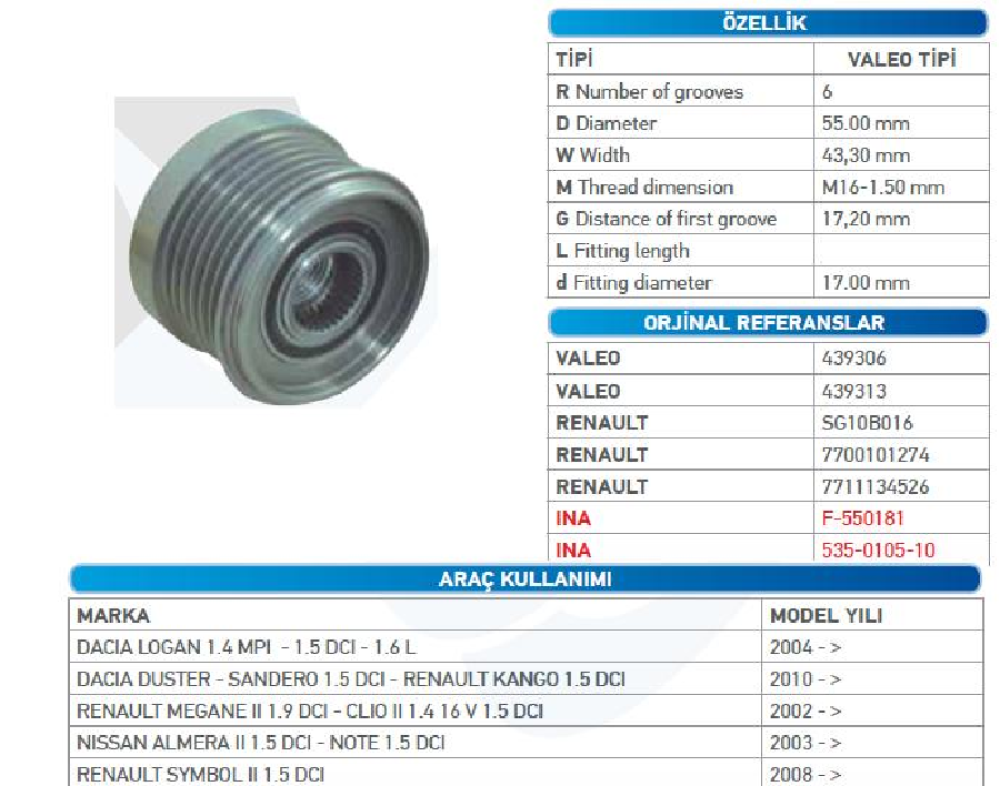 ALTER. KASNAK RULMANLI > DACIA-DOKKER,DUSTER,LODGY,LOGAN,SANDERO,SOLENZO,MCV