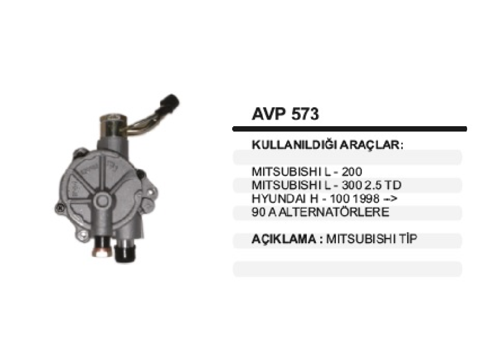 ALTER. VAKUM POMPASI MITS.TİPİ L-200 L-300 2,5 TD HYUNDAİ H100 98-> 90A ALTERNATÖRLERE REMA-AVP573