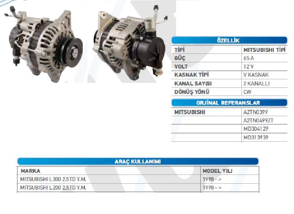 ALTERNATOR 14V/65A (MAX 90A) /V.P. DİNAMO1 MITSUBISHI L300 2.5 DIESEL L300 2.5 DIESEL TURBO 4x4 ( M10 CİVATA ) W ALTV018 ALT12664 LEA0211 ALT573 (ADETK) WUT.1101.0109