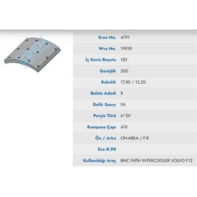 ARKA FREN BALATASI PABUC FORD CARGO YENI MODEL RENAULT TRUCKS, VOLVO 6×4 DAMPERLI (FULL ORGANİK) 4880/1