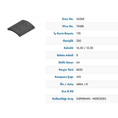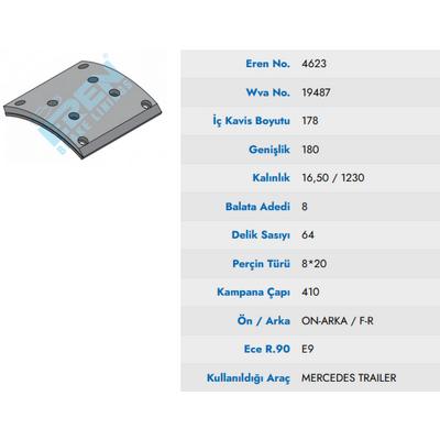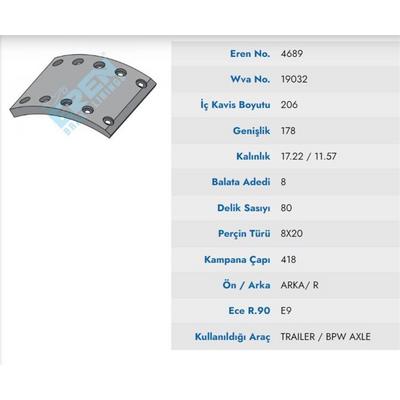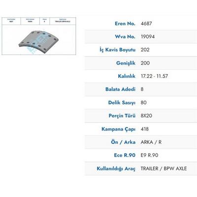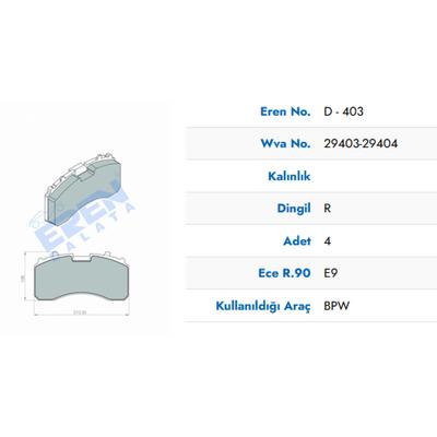 FREN BALATASI ARKA BPW (KIRMIZI KUTU) BPW TRAILERS DORSE AKS YENI MODEL 29403