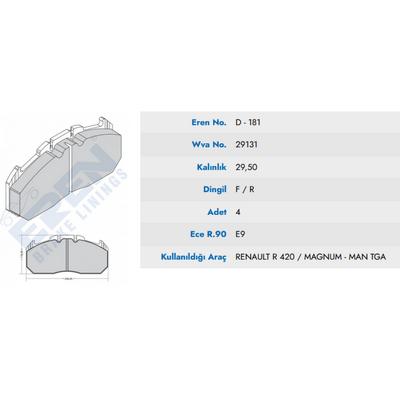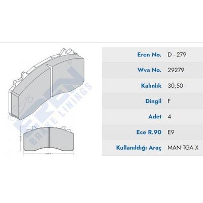 ÖN / ARKA FREN BALATASI MAN TGX YM (WABCO NG22 KALIPER) 29279