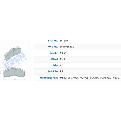 MERCEDES AXOR, ACTROS - SCAINA - MAN TGA - IVECO FREN BALATASI 29087-29105