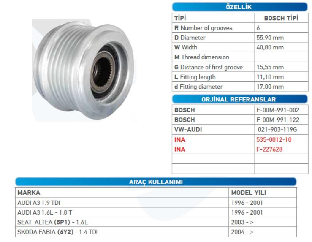 BİLYALI KASNAK KILITLI AUDI A1-A2-A3-A4-A6-1.4-1.6-1.9-2.0TDİ M.LANCER 2.0Dİ SEAT 1.4-1.6-1.9TDİ-SKODA1.9TDİ CADDY-TRANSPORTER 1,9 TDİ /105 ŞARZ UÇ BİLYA 6 KANAL 535001210 KILITLI BORA/SEAT/T5 110 VW 038903119A/T F227628.7 038903119A-T 022903119A F227628.4.5.6.7 535001210/F-553470.07 WUT.1102.0005 WUT.1102.0005