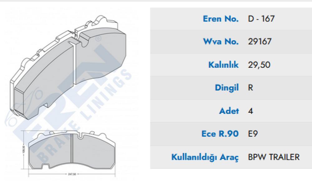 BPW TRAİLER FREN BALATASI 29167