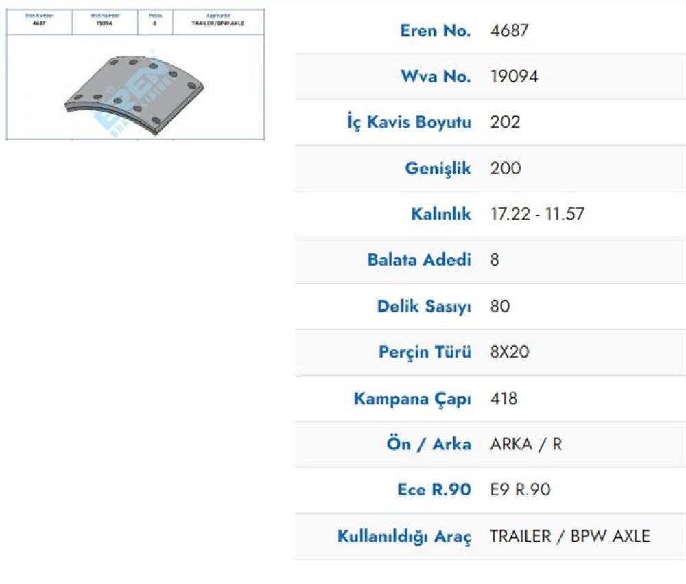 DORSE / BPW DINGIL FREN BALATASI PABUC BORANKAY 20MM 10 DELIK (FULL ORGANİK) 4687