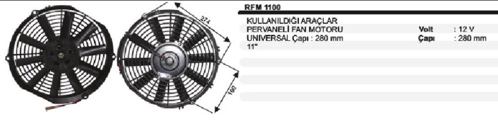 FAN MOT. 12V 11'' PERV.BÜYÜK (REVERSIBLE) RFM1100