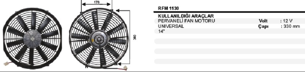 FAN MOT. 12V - 14'' AKSİYEL FAN KOMPLE (REVERSIBLE) RFM1130