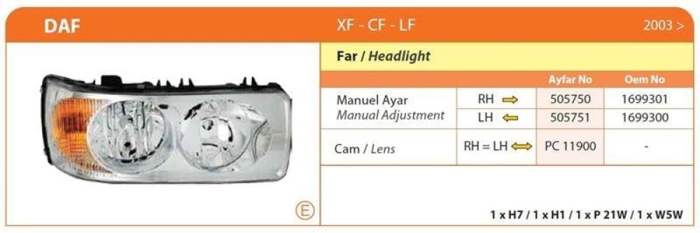 FAR PC CAM DAF XF-CF-LF (2003-2013 ) RH=LH