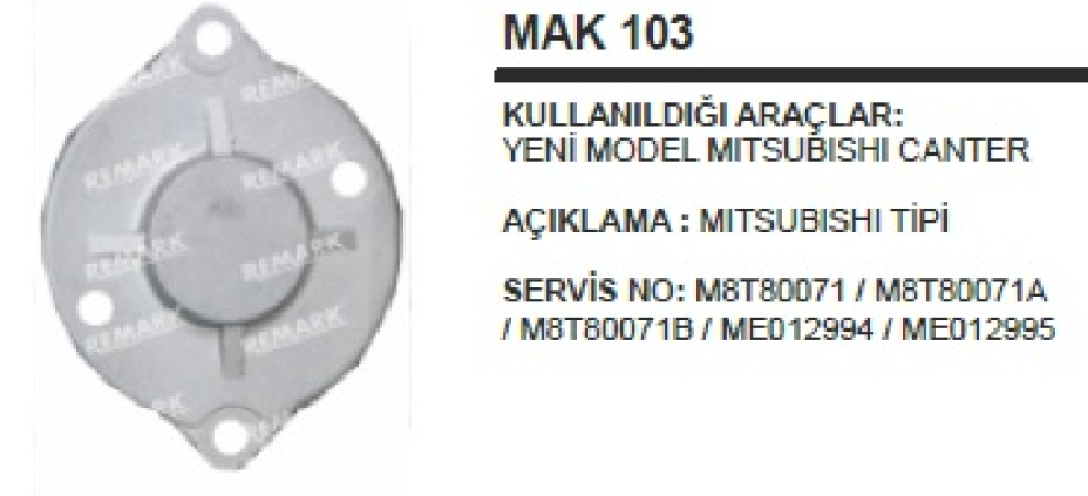 MARŞ ARKA KAPAK MITSUBISHI CANTER 659 YM MAK103 MC103