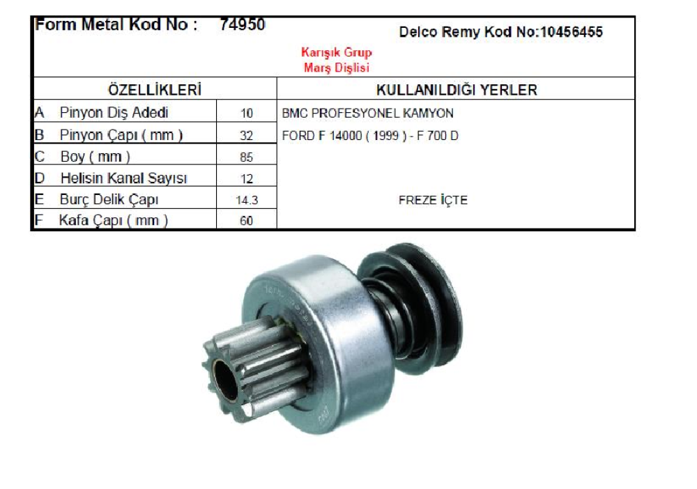 MARŞ DİŞLİSİ 10D DELCO TİPİ (1194) 28MT BMC PROF. 620-DYNAPAC-HYSTER GENERAL MOTOR-JOHN DEERE 12 KANAL 74950