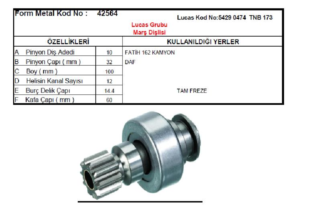 MARŞ DİŞLİSİ 10D LUCAS TİPİ BMC PROFESTONEL 620 FATIH 162 -YAVUZ-DAF 1000 TURBO YANMAR MARİN 42564