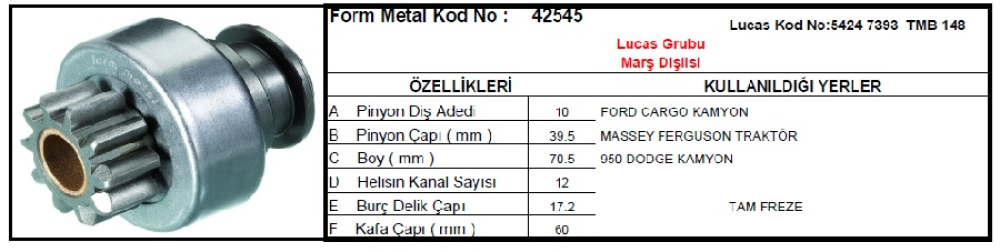 MARŞ DİŞLİSİ 10D LUCAS TİPİ >CARGO/MF/AS950 İNCE YATIK FREZE 42545