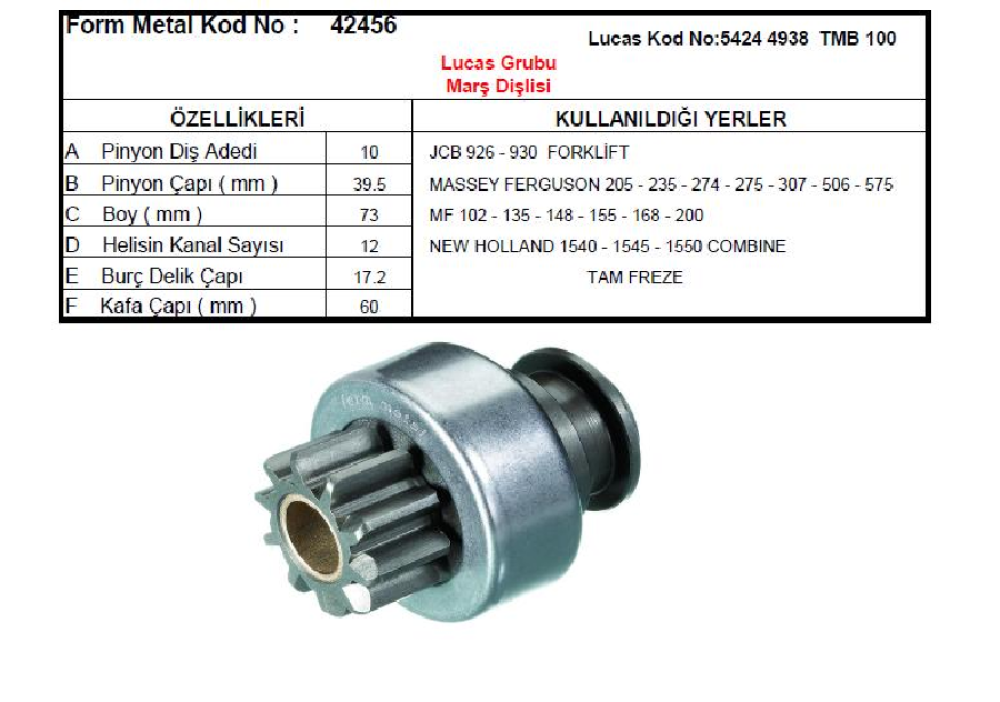 MARŞ DİŞLİSİ 10D >LUCAS TİPİ MF 205-235-275/FORD/BMC/DODGE/JCB/NEW HOLLAND 42456