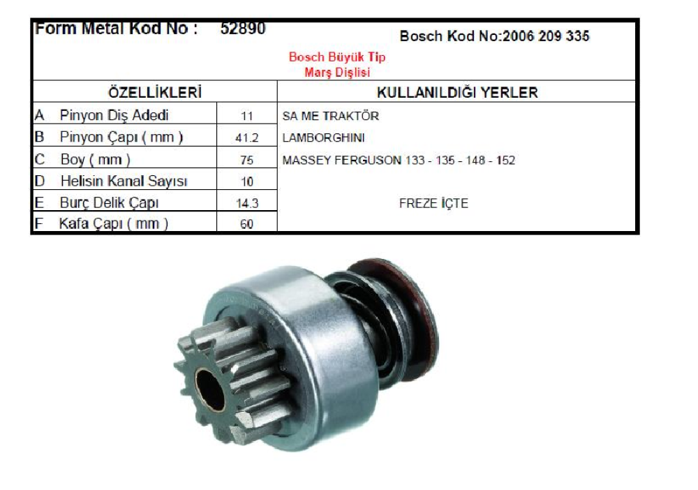 MARŞ DİŞLİSİ 11D>BOSCH TİPİ SAME TRK. 52890