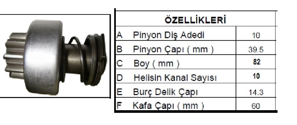 MARŞ DİŞLİSİ 12V 10DİŞ NEW HOLLAND MASSEY FERGUSON IS0941 BOY:82mm KANAL:10 PİNYON ÇAPI:39,5mm BURÇ DELİK ÇAPI:14,3mm 74975