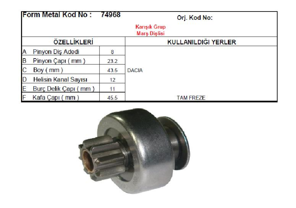 MARŞ DİŞLİSİ 8 DİŞ MİTS TİPİ CW DACIA, LOGAN BENZINLI 1.4, 1.6 MPI, RENAULT CLIO III 1.4, 1.6 MODUS 1.4, 1.6, TWINGO II 1.6 74968