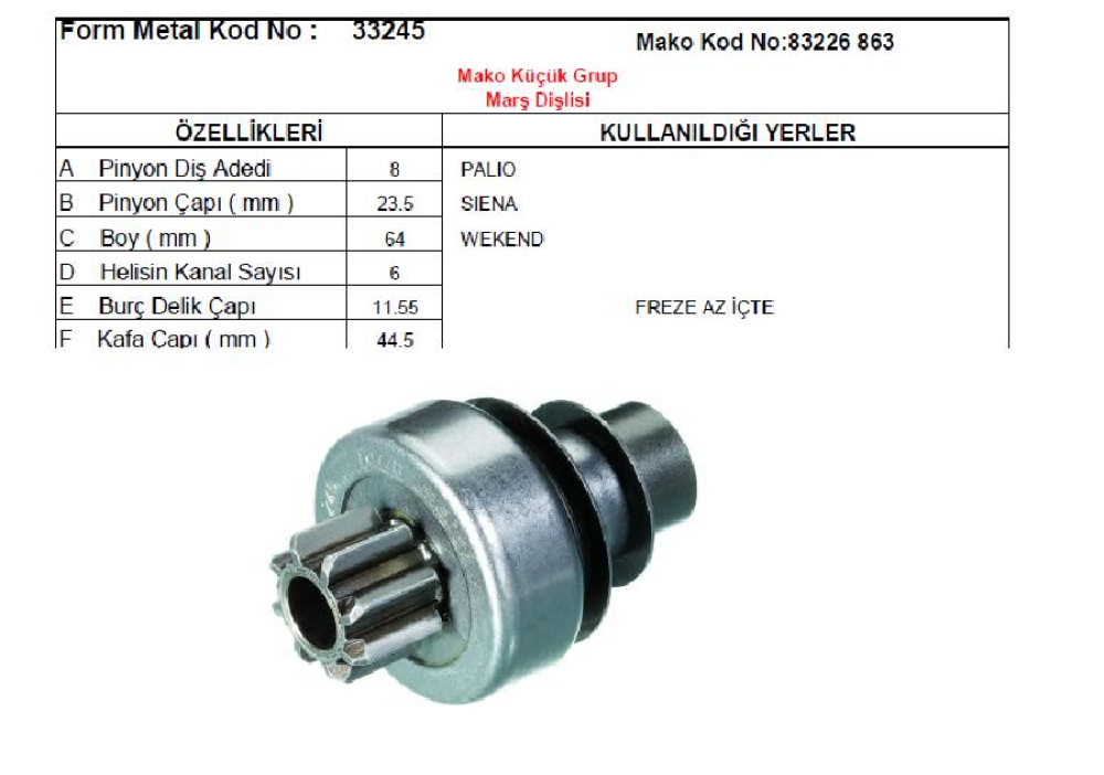 MARŞ DİŞLİSİ 8D MAKO-MARELLİ TİPİ (0999) FIAT PALIO-SIENA WEEKEND 33245