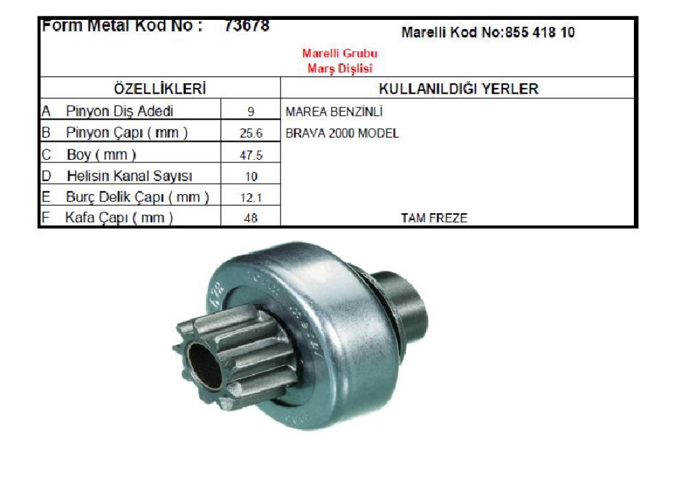 MARŞ DİŞLİSİ 9D-10K >MARELLİ TİPİ MAREA BRAVA BENZİNLİ PALIO,SIENA, 1561 73678