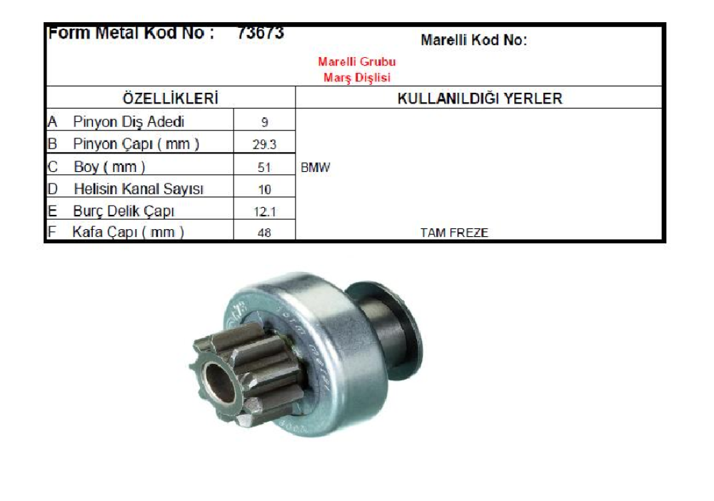MARŞ DİŞLİSİ 9D (1113) MARELLİ TİPİ FIAT BRAVA,BRAVO, PUNTO STİLO LANCİA LYBRA MAREA BMW ALFA ROMEO 73673