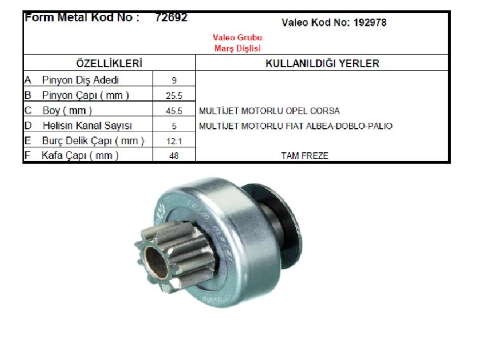 MARŞ DİŞLİSİ 9D-5K 1.3 CDTI MULTİJET VALEO TİPİ FIAT ALBEA-DOBLO-PALIO/OPEL CORSA /PEU. 206 (72644) 72692