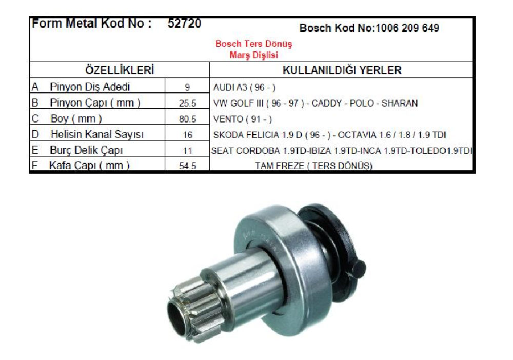 MARŞ DİŞLİSİ 9D BOSCH TİPİ DELİK ÇAPI:11mm KANAL:16 GOLF-PASSAT/FELICIA/AUDI A3/OCTAVIA 1.6/REN.ESPACE,LAGUNA,SAFRANE/ CORD0BA-IBIZA-TOLEDO/AUDİ TERS DÖNÜŞ CCW 52720