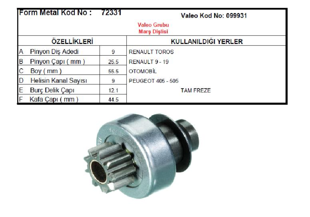 MARŞ DİŞLİSİ 9D VALEO TİPİ (0287) RENAULT 9,11,21 BENZINLI FRANSIZ 72331