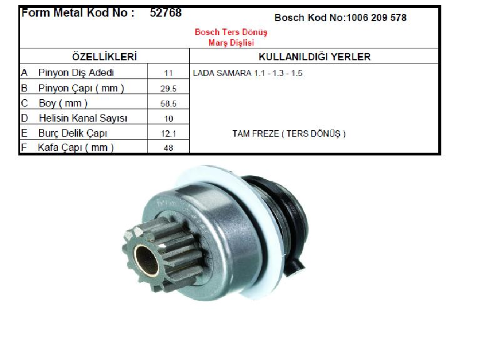 MARŞ DİŞLİSİ BOSCH TİP 11D-10K>LADA SAMARA CCW TERS DÖNÜŞ 52768