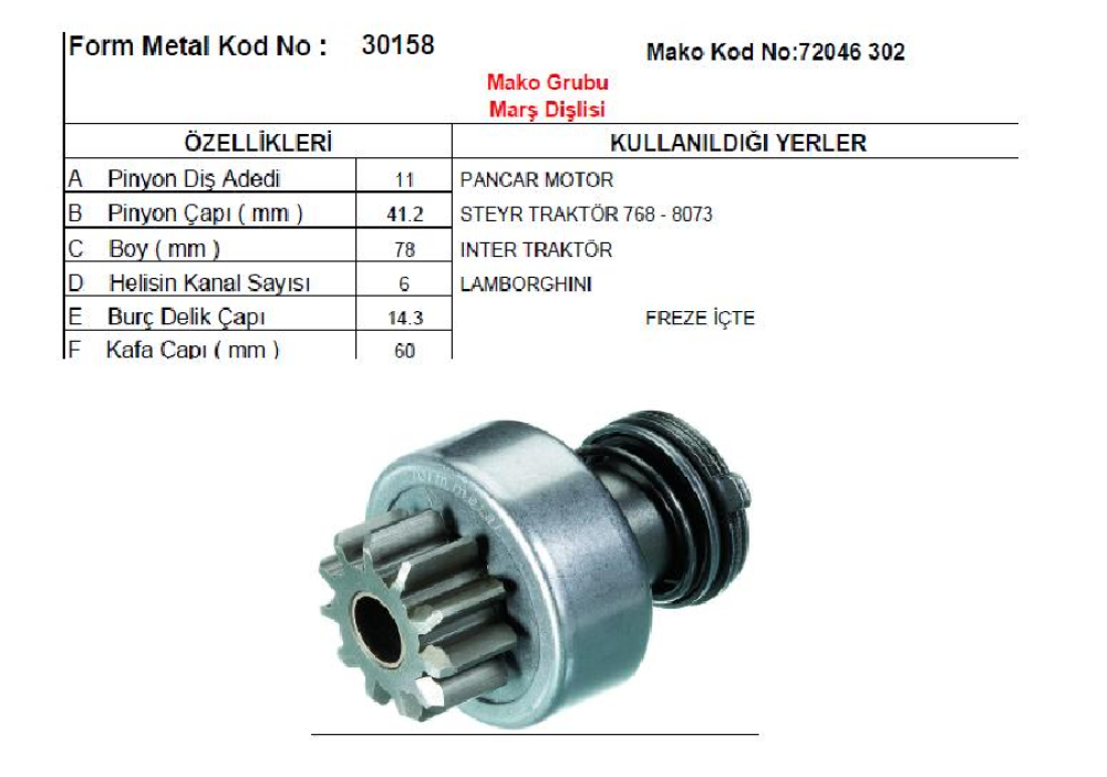 MARŞ DİŞLİSİ ÇATALSIZ MAKO TİP 11D-6K-İF>STEYR/PANCAR MOTOR EM MAKO-72316022