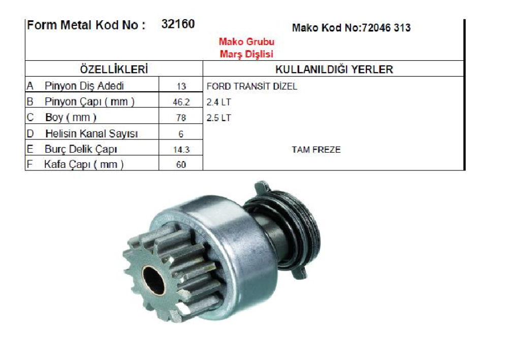 MARŞ DİŞLİSİ ÇATALSIZ MAKO TİP 13D-DF>F900 DZL YM MAKO-72315665