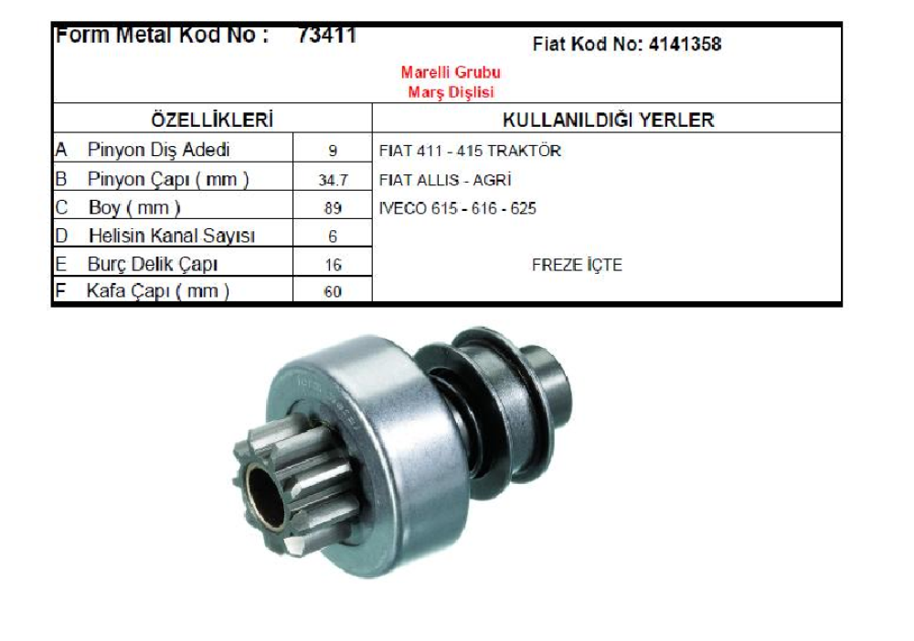 MARŞ DİŞLİSİ İNCE/KALIN>FIAT 411-415 73411