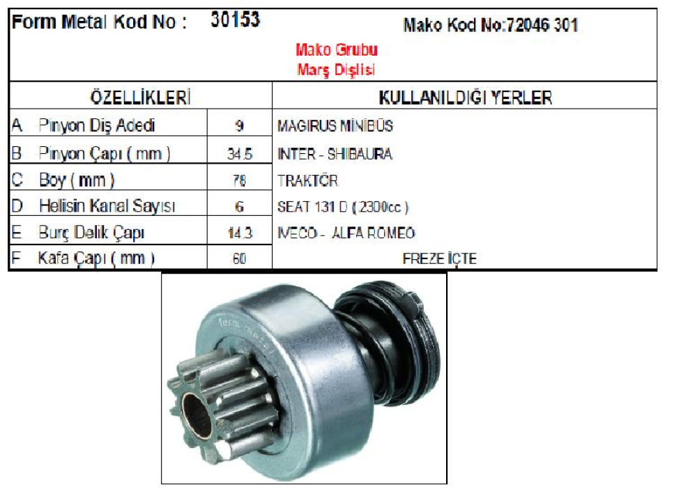 MARŞ DİŞLİSİ MAKO TİP ÇATALSIZ 9D-İF-6K>MAGIRUS EM BOY:78 PİNYON ÇAPI:34,5 30153