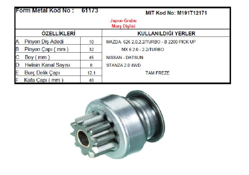 MARŞ DİŞLİSİ MITSUBISHI TIPI 10 DIS MAZDA 323-626-B 2200 PICK UP/NISSAN STANZA (596) 61173