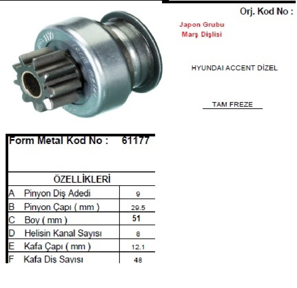 MARŞ DİŞLİSİ MITSUBISHI TIPI 9 DIS M191T12871 HYUNDAI ACCENT 1.5 DIZEL (617) ETNAUR 2000- 2005 61177