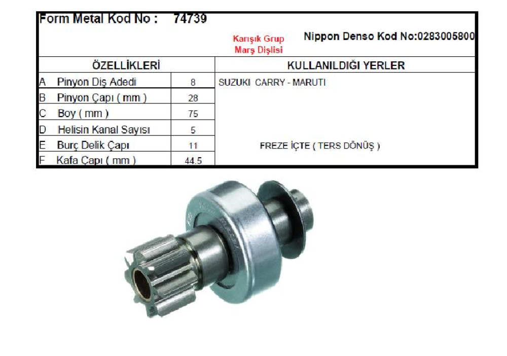 MARŞ DİŞLİSİ N.DENSO TIPI 8D SUZUKI CARRY / MARUTI (951) CCW TERS DÖNÜŞ 74739