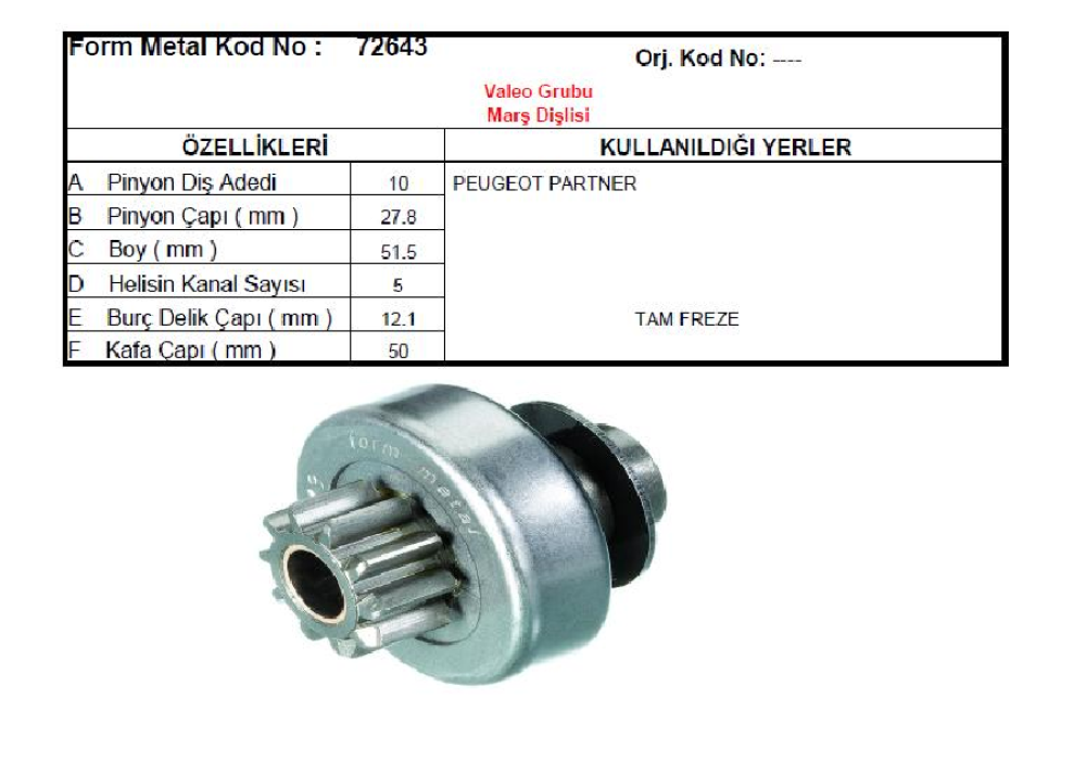 MARŞ DİŞLİSİ VALEO TİP PEUGEOT PARTNER 72643