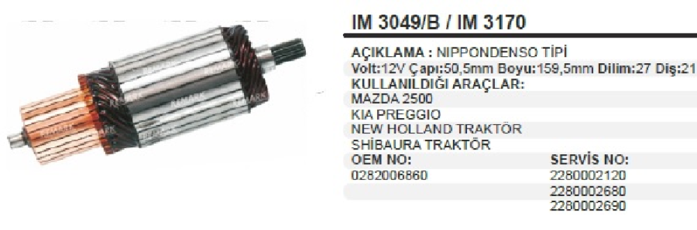MARŞ KOLL. 12V. N.DENSO TİPİ ÇAP 50.5mm BOY 159.5mm 27 DİLİM 21 DİŞ TOYOTA HİLUX/LAND CRUISER MAZDA IM3049B