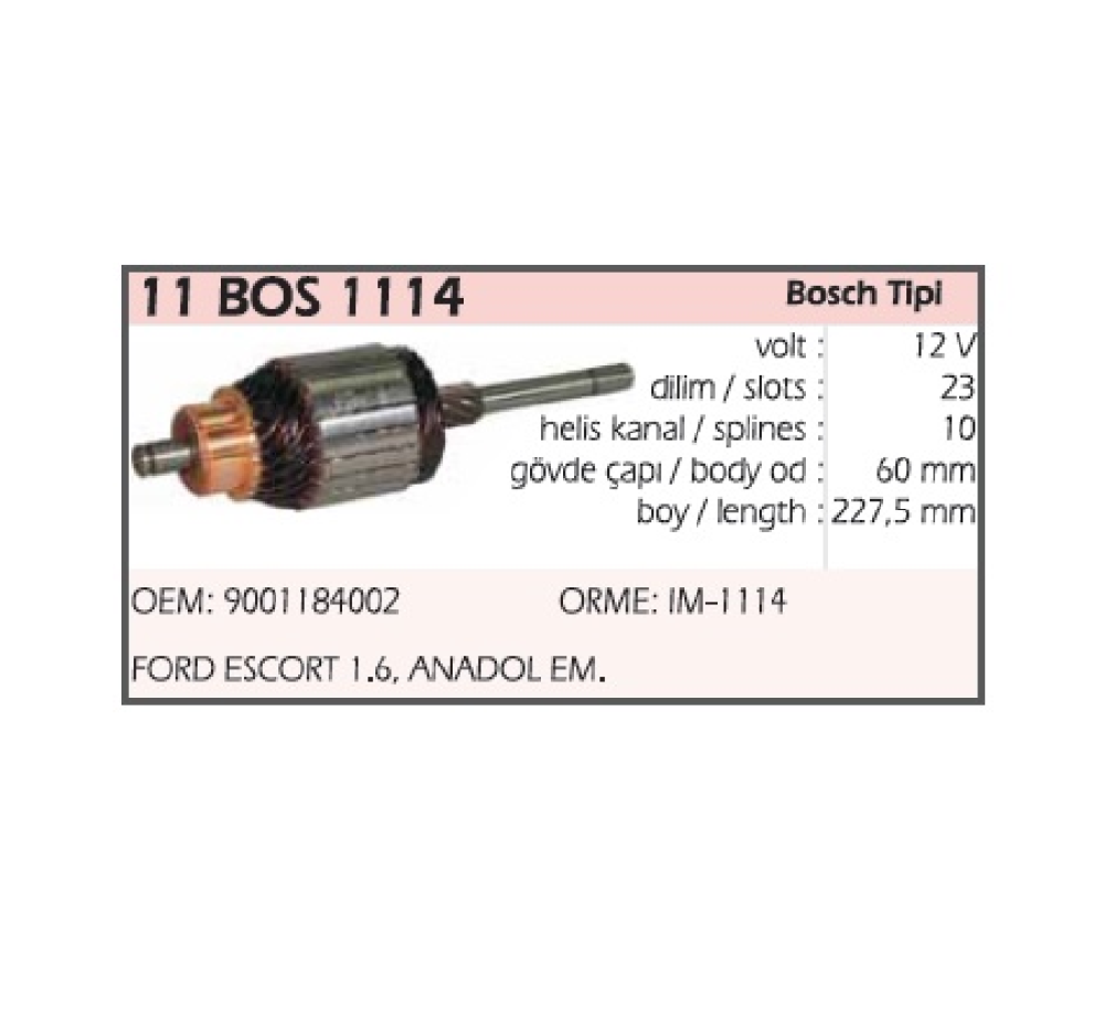 MARŞ KOLL. BOSCH TIPI 12V FORD ESCORT 1.6 E.M./ANADOL 1300 BOY:227.5 CAP:60 DILIM:23 REMA-IM1114