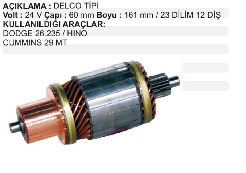 MARŞ KOLL. DELCO TİP 24V 29 MT DODGE 26,235/MERCEDES ATEGO AXOR/HİNO CUMMINS 23 DİLİM 12 DİŞ ÇAP 60 mm UZUNLUK 161 mm REMA-IM432