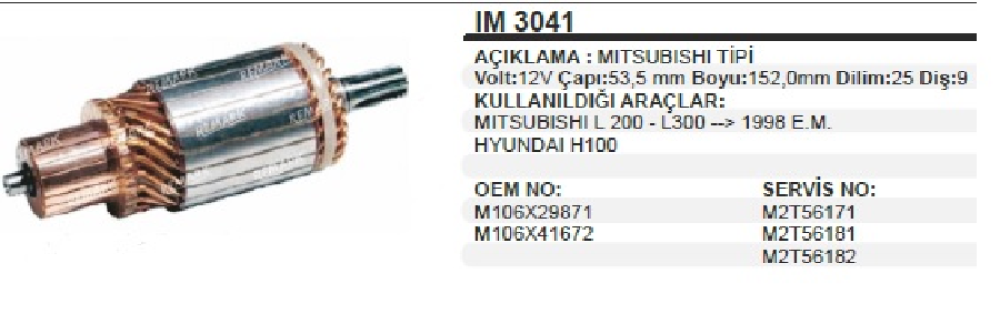 MARŞ KOLL. MITSUBISHI TİP 12V.MİTSUBISHI L200-L300 EM. HYUNDAİ H-100 25 DİLİM 9 DİŞ ÇAP 53,5 mm UZU IM3041