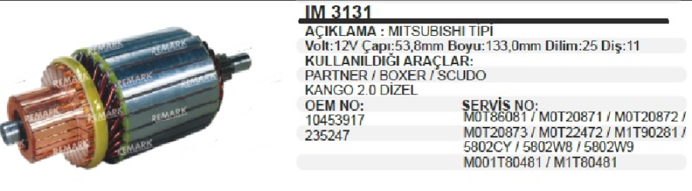 MARŞ KOLL. MITSUBISHI TIPI 12V PEUGEOT PARTNER-406 2.0-2.2 / CITROEN BERLINGO YM/ SUZUKI VITARA 1.9 IM3131