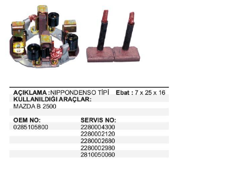 MARŞ KÖMÜR YUV. 12V DENSO TİPİ .MAZDA B-2500 4 KOMURLU/ISUZU TFR-NKR/J9 PREMIER YM REMA-BHN5005