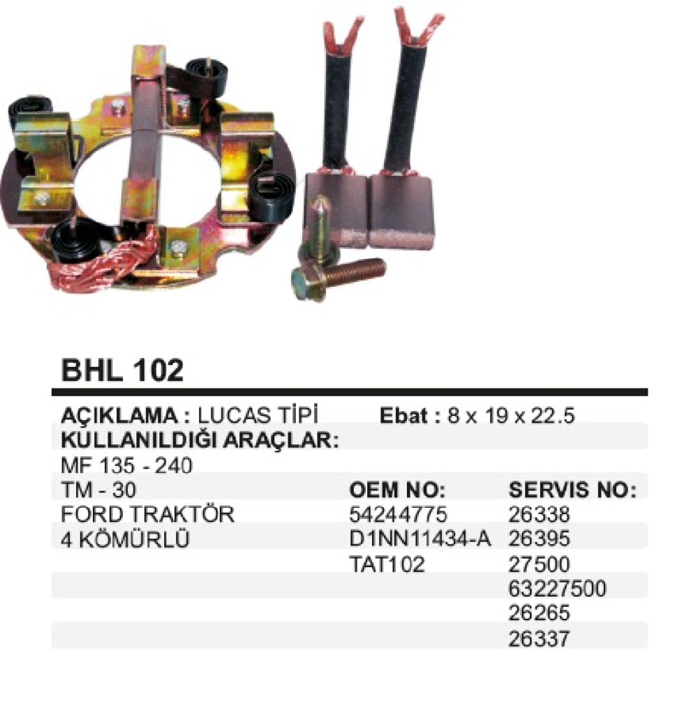 MARŞ KÖMÜR YUV. 12V > MARŞ BMC /ROVER/DEFENDER/LANDROVER/ LASX 15-16 MF 135 240 YM TM30 FORD TRAKTÖR 4 KÖMÜRLÜ VERT-BHL102