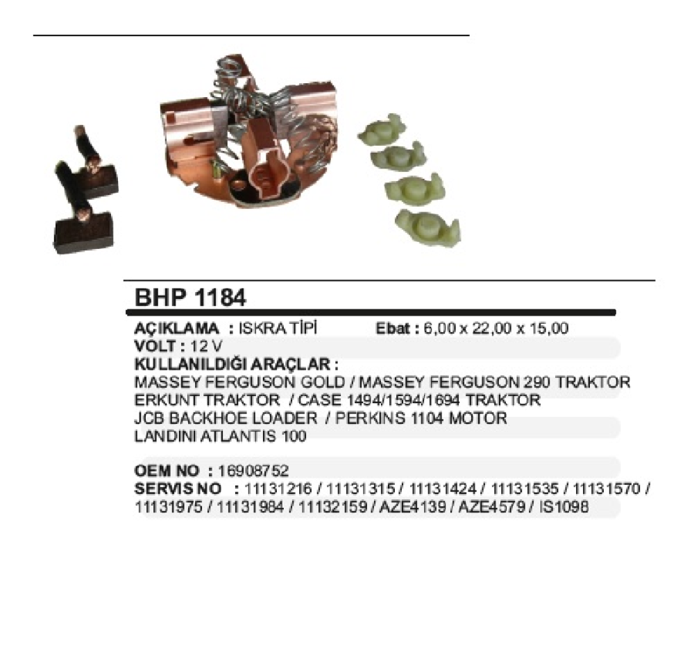 MARŞ KÖMÜR YUV. > JOHNDEERE/LANDINI/MF/PERKINS/JCB (IS1027-1064-1098-1195-1201 MARŞLARDA ) ERKUNT TRAKTÖR VERT-BHP1184