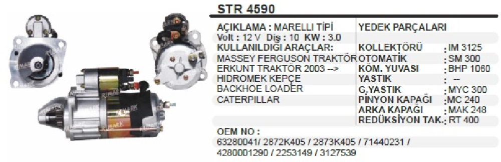MARŞ MOTORU 12V.10D.3,0 KW MARELLİ TİPİ> MF 3050 -3060 PANTOM-MF260 GOLD-ERKUNT TRAKTÖR/HİDROMEK KEP STR4590