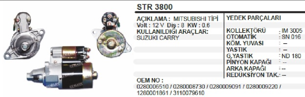 MARŞ MOTORU 12V 8 DIS 0,6 KW DENSO TIPI 028000-6730 SUZUKI CARRY SK-410 (GENİŞ GOVDE) CCW TERS DÖNÜ STR3800