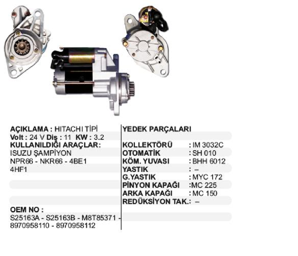 MARŞ MOTORU ISUZU SAMPIYON 24V. REMA-STR6107